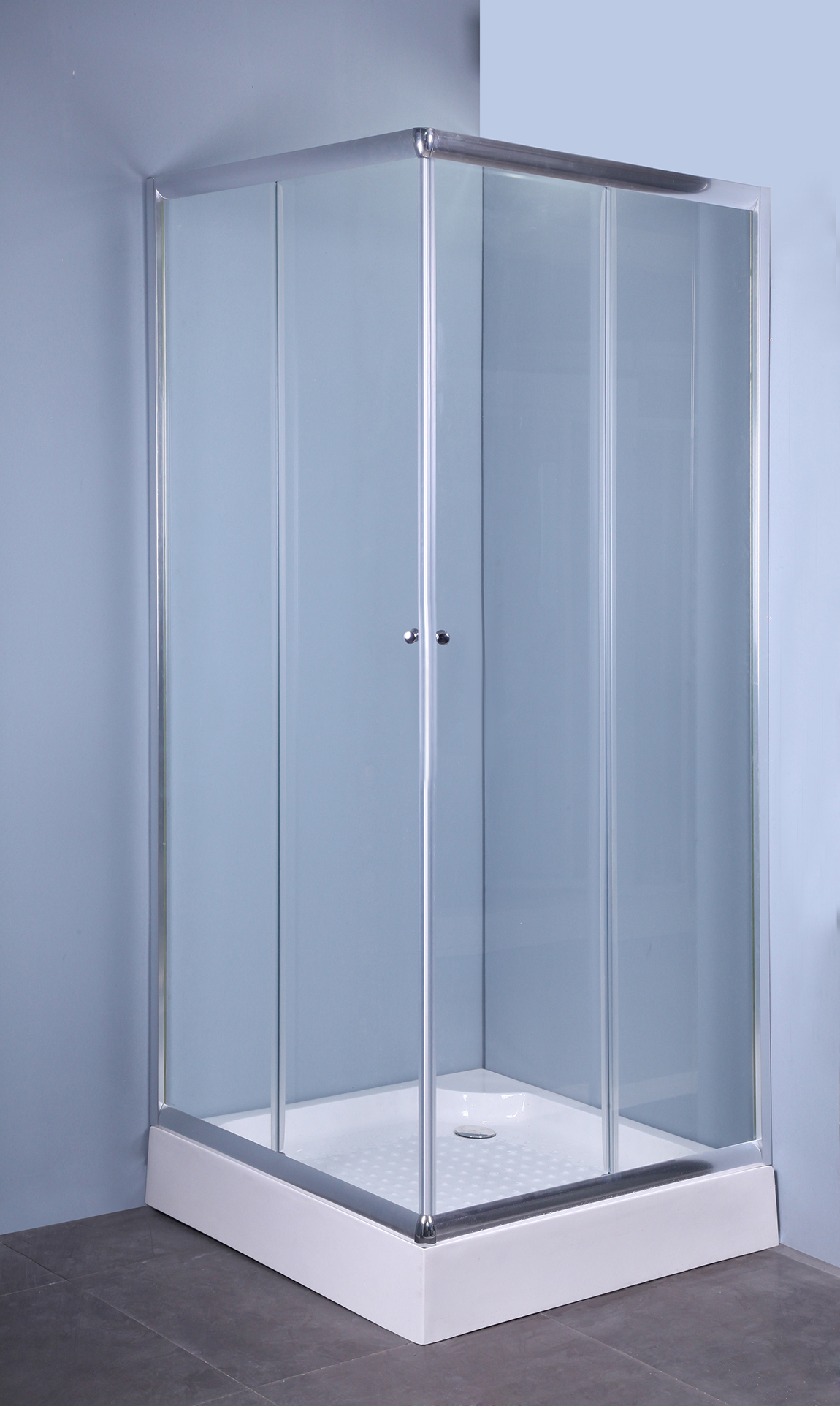 Mod. IGLO profili in alluminio cromato, pareti in cristallo trasparente da 4 mm Altezza 185 cm Estensibilità cm 78÷78 x 80÷80