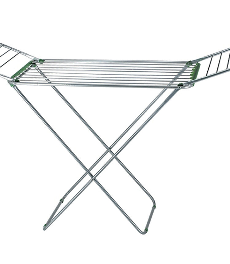 Mod. PELLICANO in resina. Per stendere fino a 20 m di bucato. Dimensioni aperto cm 180x56x125h Dimensioni chiuso cm 56x9x131h Peso 5,7 kg. Colore bianco