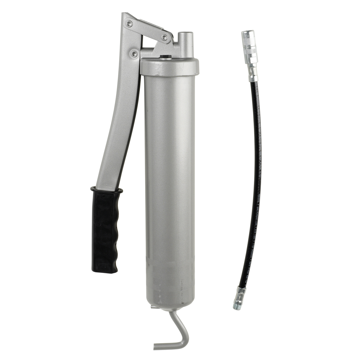 Art. 12633 Compressore laccato argento, con filettatura per raccordo di riempimento, leva in plastica. Con flessibile rinforzato e testina idraulica. Attacco 10MA Capacità 500 ml Confezione in scatola di cartone