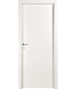 Anta telaio perimetrale compreso di rinforzi in massello di abete. Riempimento in cartoncino trattato. Piani in MDF nobilitato con microlaminato. Bordatura sui 4 lati in melaminico. Spessore mm 44. Reversibile. Telaio traverso e montante composto da MDF